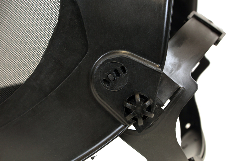 Экран из мелкоячеистой стальной сетки надежно защищает от крупных и мелких твердых высокоскоростных частиц (низкокинетический удар) удар с кинетической энергией до 0,84 Дж; отличительной особенностью щитка являются: вентиляционные свойства, горячий воздух не пропускается в органы дыхания, к лицу и глазам, из-за исключения запотевания лицевой части, щиток обеспечивает стабильный и устойчивый обзор; козырек и наголовное крепление изготовлены из материалов, устойчивых к воздействию высоких температур.