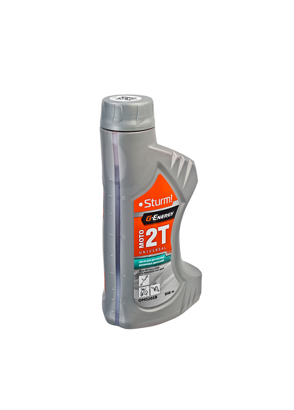 Sturm OM0201B – универсальное минеральное масло новейшей рецептуры с увеличенными на 20%, относительно базовых стандартов, показателями от ведущего российского производителя – концерна Газпромнефть. Предназначено для двухтактных двигателей бензиновых пил, кос, воздуходувок, газонокосилок, культиваторов и другой садово-парковой техники с воздушным охлаждением и предварительным смешиванием топлива и масла, либо двигателей, оснащенных системами впрыска, с рабочим объемом менее 200 см³. Высококачественные малозольные присадки обеспечивают маслу отличную смешиваемость и образование высокопрочной и устойчивой пленки. Масло позволяет двигателю работать при высоких нагрузках, сохраняет его ресурс и гарантирует отличное смазывание деталей, а также препятствует образованию отложений на свечах и кольцах. Поставляется в пластиковых канистрах объемом 0,946 литра.