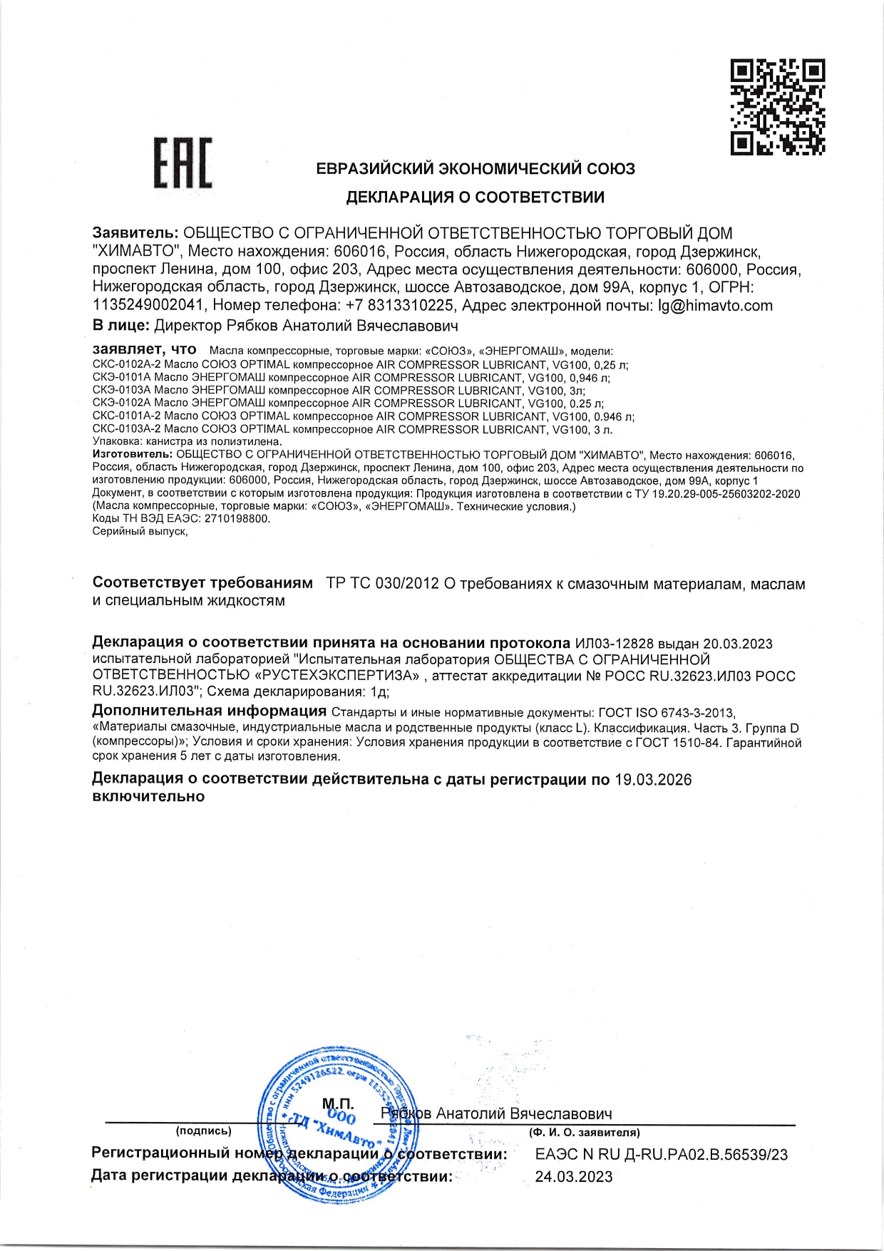 Тип масла