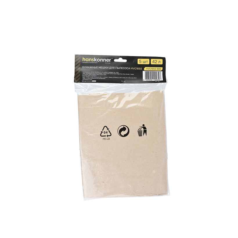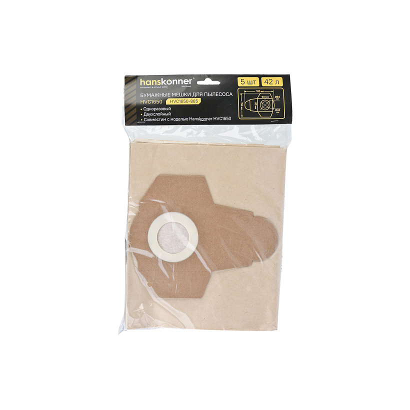 Бумажные мешки для пылесоса HVC1650 42л Hanskonner, 5шт/уп