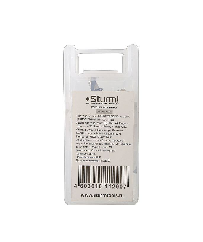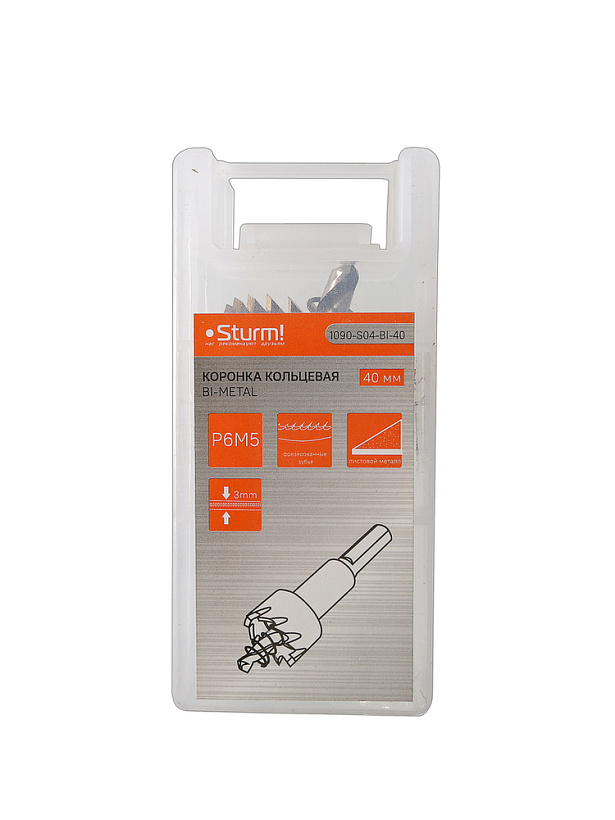 Коронка биметаллическая, 40 мм, по тонколистовому металлу, центрирующее сверло, Sturm!