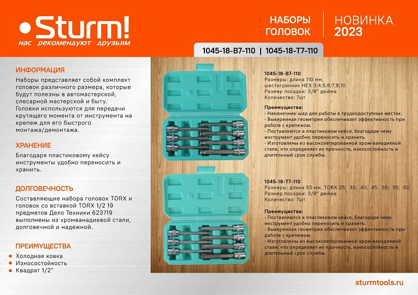 Набор головок HEX 3/8", 110мм, 7шт, наконечник шар, СrV Sturm!