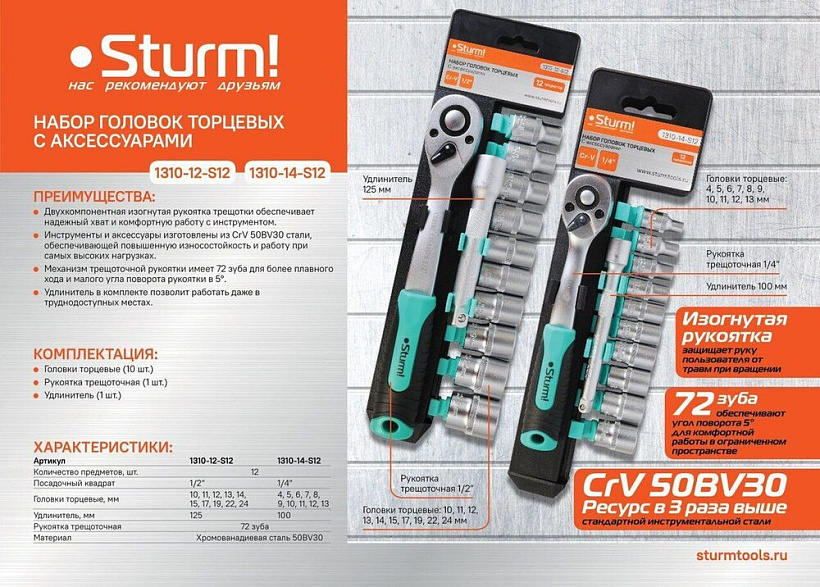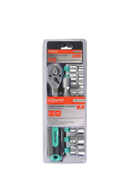 Набор головок торцевых с аксессуарами, 12 пр., 1/2" Sturm!