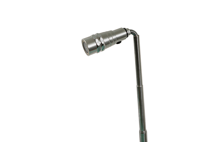 Телескопический светодиодный фонарь с магнитом устанавливается в угол кейса при необходимости и ярко освещает ваше рабочее пространство.