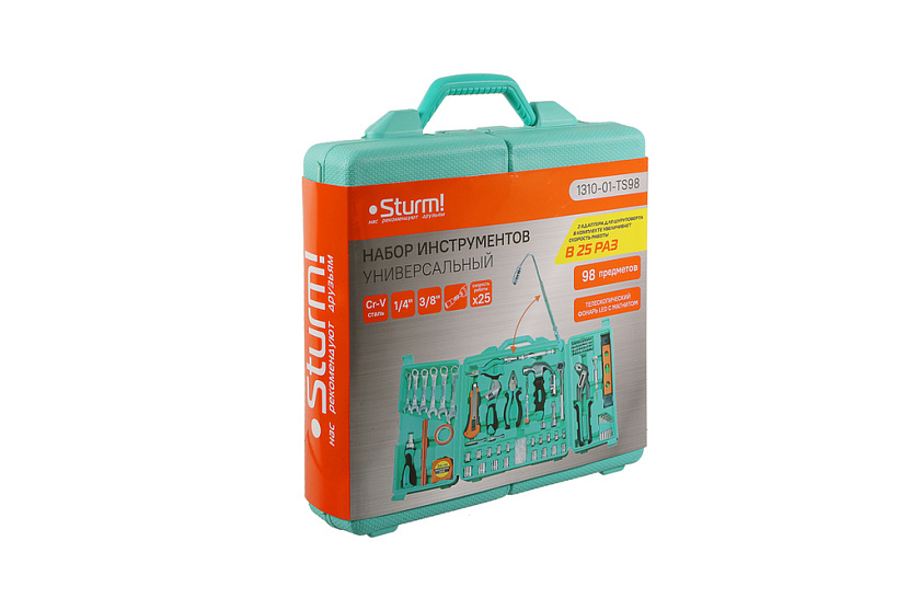 Набор инструментов из 98 предметов будет незаменимым помощником при ремонтных работах дома или в мастерской, так и при самостоятельном обслуживании и ремонте транспортных средств. Телескопический светодиодный фонарь с магнитом устанавливается в угол кейса при необходимости и ярко освещает ваше рабочее пространство.