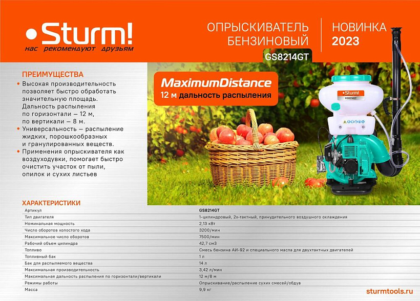 Опрыскиватель бензиновый ранцевый Sturm! GS8214GT