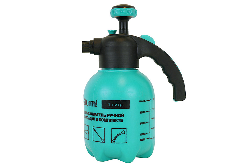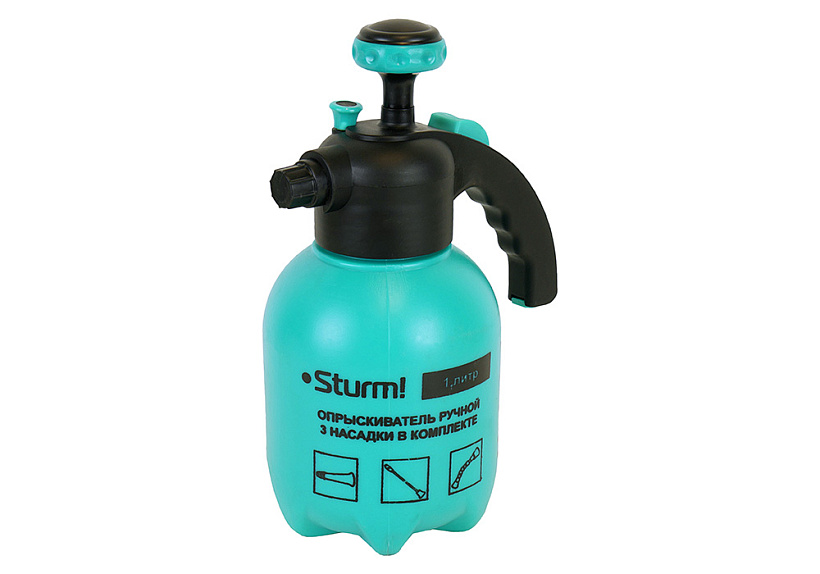 Опрыскиватель ручной 1 л, 3 насадки, с насосом, клапан сброса давления Sturm!