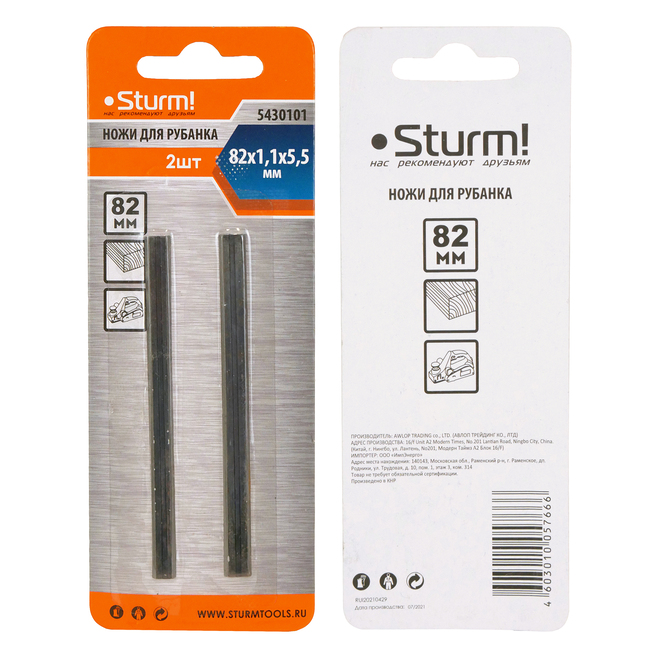 Ножи для рубанка, 82x1,2x5.5мм, 2 шт, универсальные, Sturm!