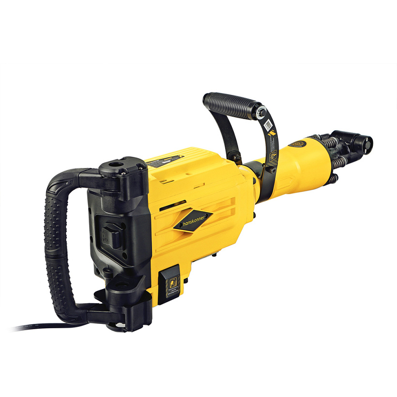 Hanskonner HRH2048VC – мощный и производительный отбойный молоток с типом патрона HEX. Предназначен для разрушения конструкций из бетона, железобетона, кирпича и камня, долбления асфальтовых, бетонных и плиточных покрытий. Инструмент обладает отличной развесовкой, за счет чего достигается его уверенный контроль, а также тщательно проработанной эргономикой. Регулируемая на 360° дополнительная D-образная рукоять обеспечивает надежный хват в любом положении отбойного молотка, а наличие антивибрационной задней рукояти способствует снижению нагрузки на оператора при работе. Модель оснащена 2100 Вт электродвигателем и мощным ударным механизмом, развивающим энергию удара в 50 Дж – это позволяет быстро и эффективно справляться с задачами по демонтажу различной сложности. Высокий ресурс инструмента при работе в особо тяжелых условиях гарантируют бронированный арамидной нитью электродвигатель ArmorProtect и закаленные шестерни редуктора. Для простоты обслуживания модель имеет функцию быстрого доступа к щеткам, способствующую их замене без разбора элементов корпуса. Длинный пятиметровый сетевой кабель 5VelcroRubber дает возможность расширить рабочую зону до 78 м2 без необходимости применения дополнительного удлинителя. Наличие специального фиксатора-липучки позволяет быстро и просто фиксировать кабель в транспортном положении. Удобство хранения и перемещения отбойного молотка с места на место обеспечивает штатный металлический кейс-тележка.