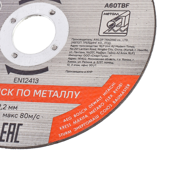 Диск отрезной по металлу предназначен для монтажных пил и станков с вращением с линейной скоростью до 80 м/с.