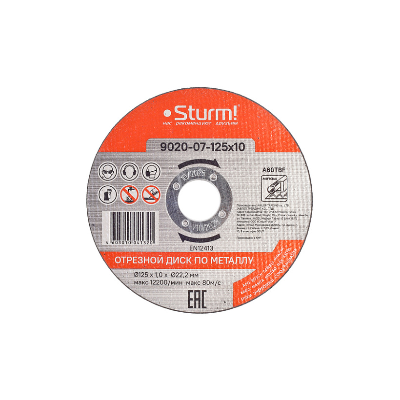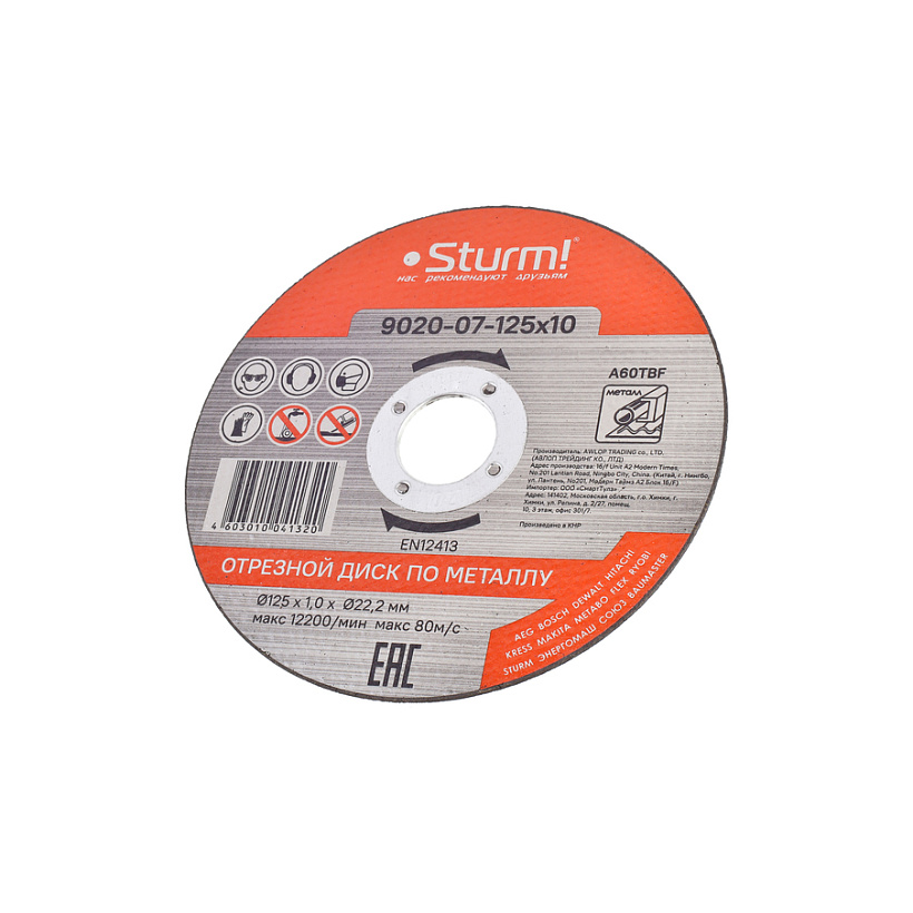 Диск отрезной по металлу, АРМИРОВАННЫЙ,размер 125x1.0x22.22 Sturm!