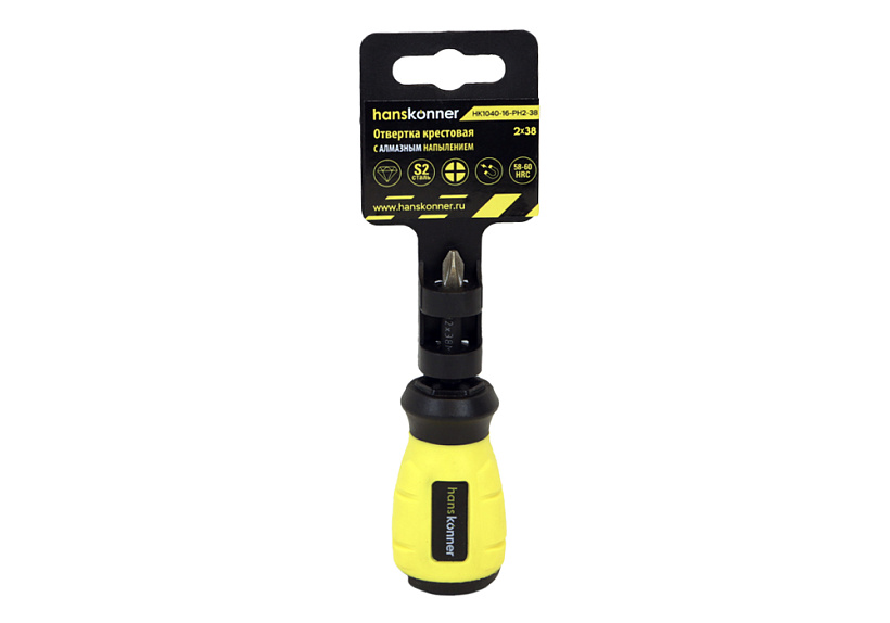 Отвертки имеют эргономичную двухкомпонентную рукоятку с рифлениями, исключающими проскальзывание, мягкая поверхность рукоятки делает работу комфортной. Рабочая часть выполнена из стали марки S2, наконечником с алмазным покрытием,что определяет ее прочность и износостойкость. Жало отвертки намагничено для удержания метизов при работе.