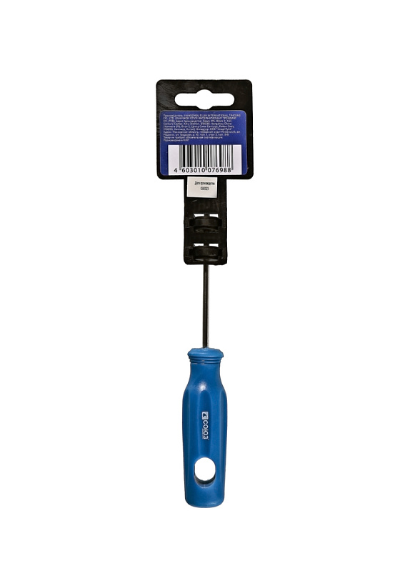 Эргономичная рукоятка из ПВХ с удобным отверстием для подвеса. Рабочая часть отвертки выполнена из высоколегированной хромованадиевой инструментальной стали и имеет высокую твердость и прочность, что определяет длительный срок службы инструмента.Возможно, вас заинтересует