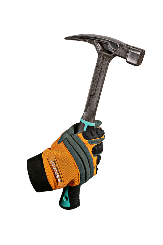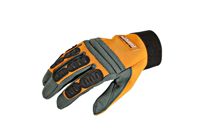 На пальцах с тыльной стороны нашиты специальные твердые накладки, которые дают высокую степень защиты в тяжелых условиях работы