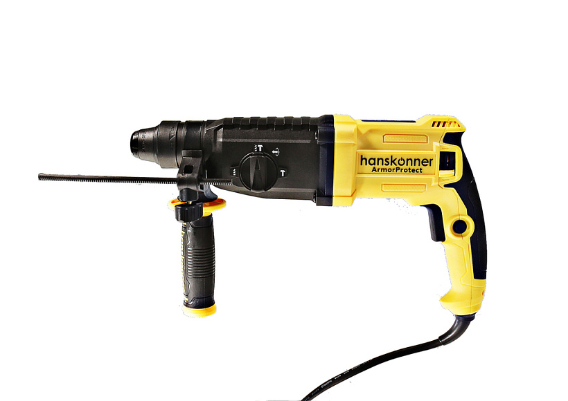 Hanskonner HRH0928LRE – универсальный трехрежимный перфоратор под тип патрона SDS Plus. Имеет классическую горизонтальную компоновку с продолговатым узким корпусом и небольшую массу, за счет чего максимально удобен при высотных работах, а также при эксплуатации в условиях с ограниченным доступом. Надежному и комфортному хвату способствует наличие эргономичных прорезиненных основной и дополнительной рукоятей SoftGripZone. Модель оснащена электродвигателем мощностью 1050 Вт и усиленным вакуумно-компрессионным механизмом, развивающим энергию удара – 3.5 Дж – это позволяет уверенно бурить отверстия диаметром до 28 мм в материалах различной твердости, включая кирпичную кладку, камень и бетон, а также использовать корончатые сверла больших диаметров (до 68 мм). Благодаря наличию ряда конструктивных решений Hanskonner HRH0928LRE отлично подготовлен для интенсивной эксплуатации: мотор имеет дополнительное бронирование арамидной нитью ArmorProtect, надежно защищающее от абразивного воздействия пыли, положительно влияют на ресурс фирменные подшипники высокого качества, а также наличие специального маслоотражательного кольца на червячном валу. Подпружиненный механизм поворота щеточного узла для реализации функции реверса, позволяет сохранять одинаковую мощность при любом направлении вращения, исключает случайные переключения во время работы и по статистике, снижает вероятность выхода из строя выключателя. Предусмотрена система автоматического отключения графитовых щеток AutoStop, предотвращающая повреждение коллектора при критическом уровне щеточного износа Универсальность применения гарантируют три режима работы – в зависимости от конкретной задачи пользователь выбирает нужный: сверление, сверление с ударом, либо режим удара. Помимо, трех рабочих режимов предусмотрен еще один дополнительный, дающий возможность установки долота в любом угловом положении. Также модель Hanskonner HRH0928LRE получила новый выключатель c функцией акселератора AccelSwitch, обеспечивающий плавное начало засверливания, а также оптимальный подбор скорости при работе с разными материалами. Для безопасности пользователя в перфораторе установлена предохранительная кулачковая муфта SafetyClutch – она позволяет избежать обратного удара в случае заклинивания оснастки. Сетевой кабель 4VelcroRubber имеет резиновую изоляцию, что сохраняет его гибкость и эластичность в условиях низких температур, а четырехметровая длина кабеля дает возможность использовать инструмент без применения дополнительного сетевого удлинителя, обеспечивая рабочую зону площадью до 50 квадратных метров. Шарнирное крепление кабеля обеспечивает его стойкость к изломам, способствуя долгому сроку службы. Инструмент штатно комплектуется вместительным пластиковым кейсом для удобства хранения и транспортировки.