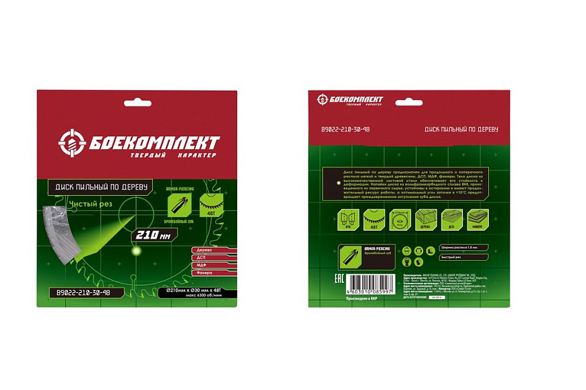 Пильный диск по дереву 210x30мм, 48 зубьев, БОЕКОМПЛЕКТ