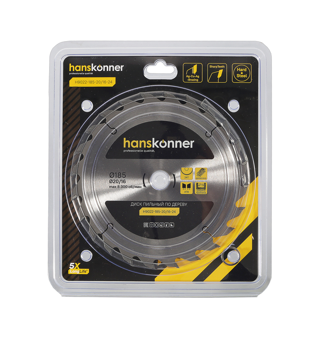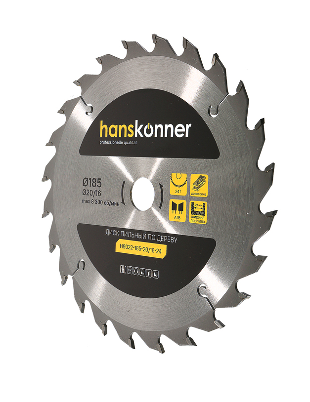 Пильный диск по дереву 185x20/16мм, 24 зубьев, Hanskonner