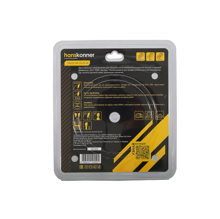 Пильный диск по дереву 185x20/16мм, 36 зубьев, Hanskonner