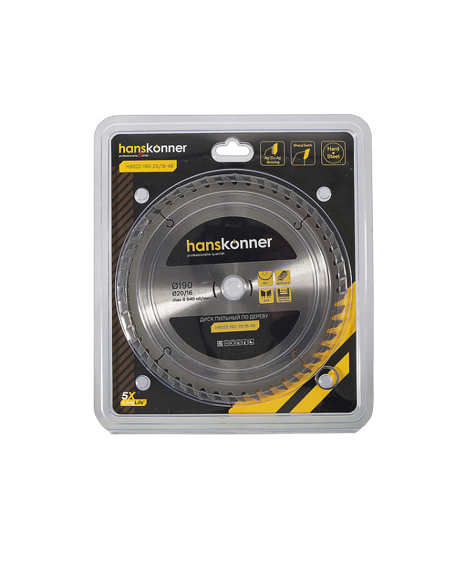 Пильный диск по дереву 190x20/16мм, 48 зубьев, Hanskonner