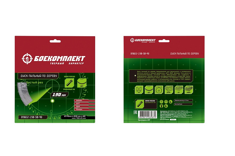 Диск пильный по дереву предназначен для продольного и поперечного распила мягкой и твердой древесины, ДСП, МДФ, фанеры. Тело диска из высококачественной листовой стали обеспечивает его стойкость к деформации. Напайки диска из вольфрамкарбидного сплава ВК8, произведенного из первичного сырья, устойчивы к истиранию и имеют продолжительный ресурс работы, а оптимальный угол заточки в +10  ̊C предотвращает преждевременное затупление зуба диска.