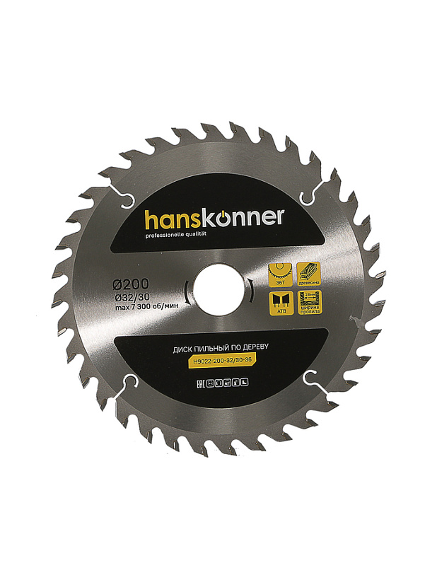 Пильный диск по дереву 200x32/30мм, 36 зубьев, Hanskonner