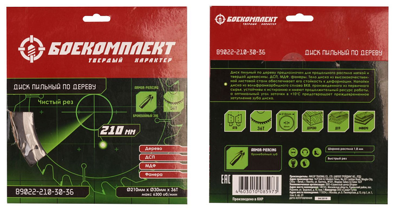 Пильный диск по дереву 210x30мм, 36 зубьев, БОЕКОМПЛЕКТ