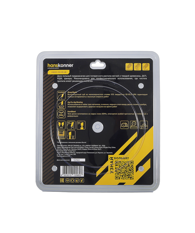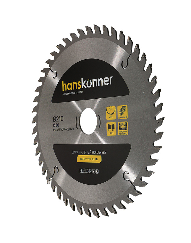 Пильный диск по дереву 210x30мм, 48 зубьев, Hanskonner
