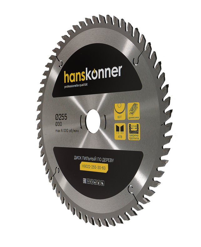Пильный диск по дереву 255x30 мм, 60 зубьев, Hanskonner