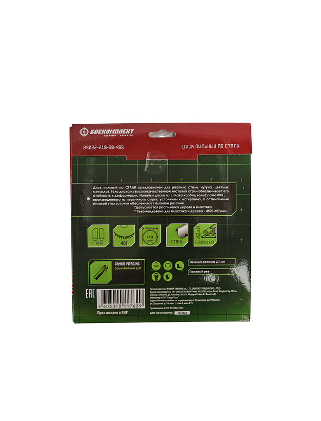 Пильный диск по СТАЛИ 210x30мм, 48 зубьев, БОЕКОМПЛЕКТ