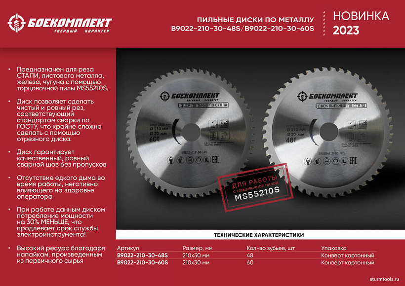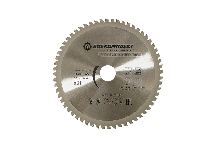 Пильный диск по СТАЛИ 210x30мм, 60 зубьев, БОЕКОМПЛЕКТ