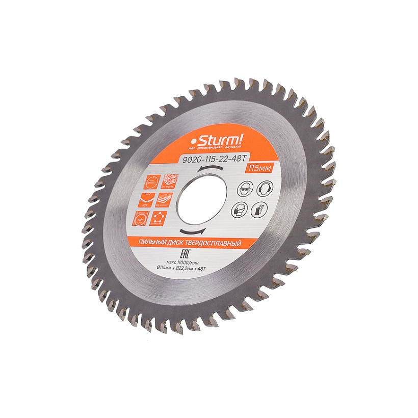 Пильный диск, размер 115x22x48 зубьев, твердосплавные напайки Sturm!