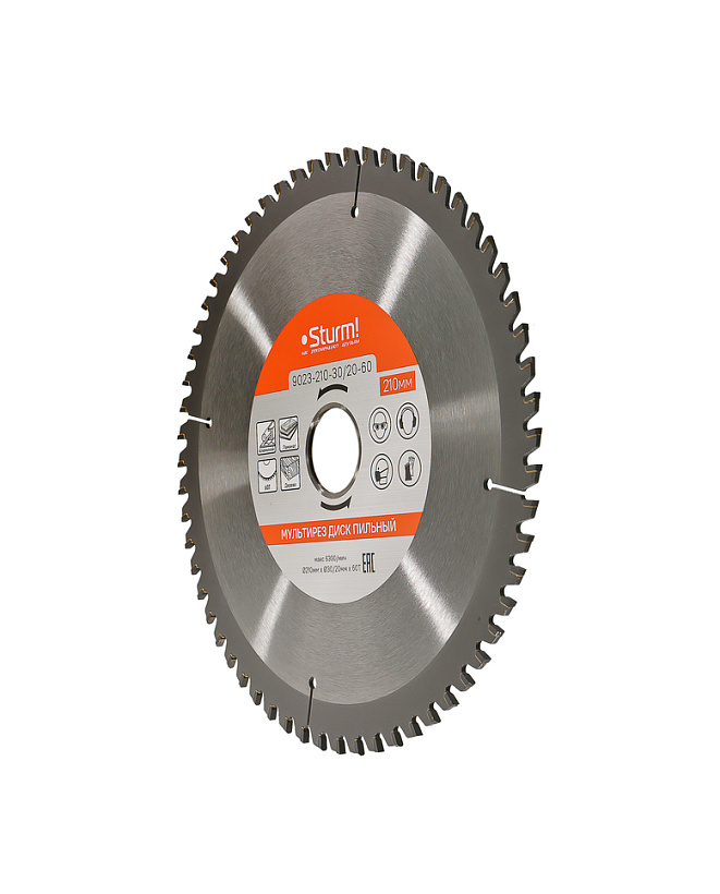 Пильный диск, размер 210x30/20x60 зубьев Мульти рез Sturm!
