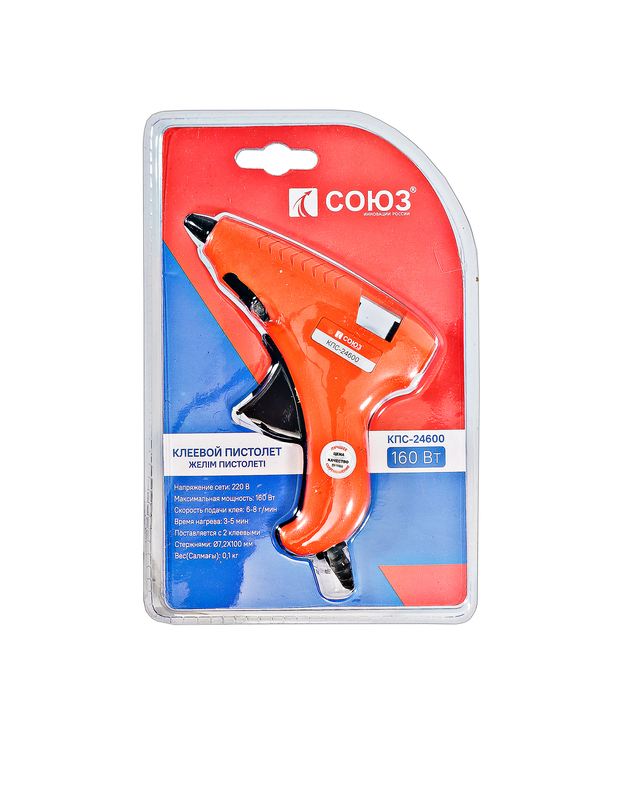 Клеевой пистолет СОЮЗ КПС-24600 подходит для качественного выполнения бытовых работ. Инструмент отлично склеивает пластмассу, древесину, картон, бумагу, искусственную кожу, ткань, пробку, камень, стекло и металл. Модель подходит для мелких деликатных работ по склеиванию с использованием небольшого количества клея.
