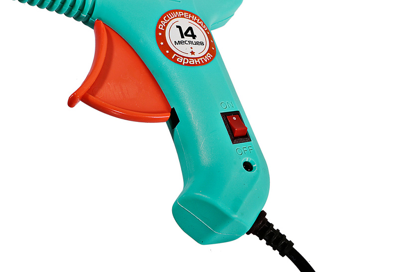 Встроенный выключатель избавляет от необходимости выключать клеевой пистолет из розетки на время перерывов в работе, а световой LED-индикатор информирует пользователя о наличии включенного питания.