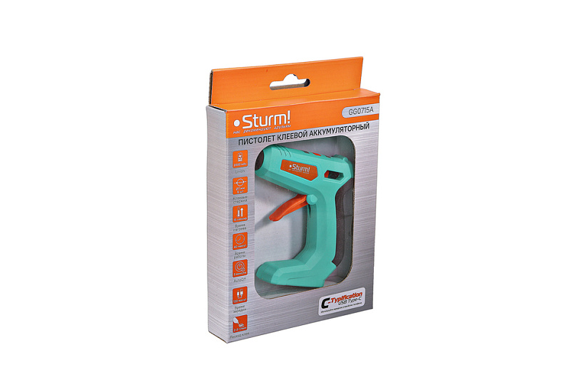 Аккумуляторный клеевой пистолет Sturm GG0715A не требует подключения к электрической сети, позволяя пользователю не быть привязанным к определённому месту раборты, повышая мобильность действий. Современный порт USB-C поддерживает технологию быстрой зарядки, что позволяет скорее заряжать аккумулятор устройства и сократить время ожидания перед использованием. Для подзарядки аккумуляторной батареи подойдёт любой аналогичный кабель USB Type C от стороннего устройства, что исключает необходимость хранить индивидуальный кабель питания.