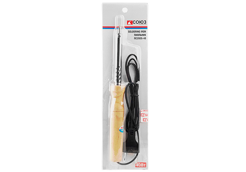 Паяльник электрический 40 Вт, деревянная рукоятка СОЮЗ