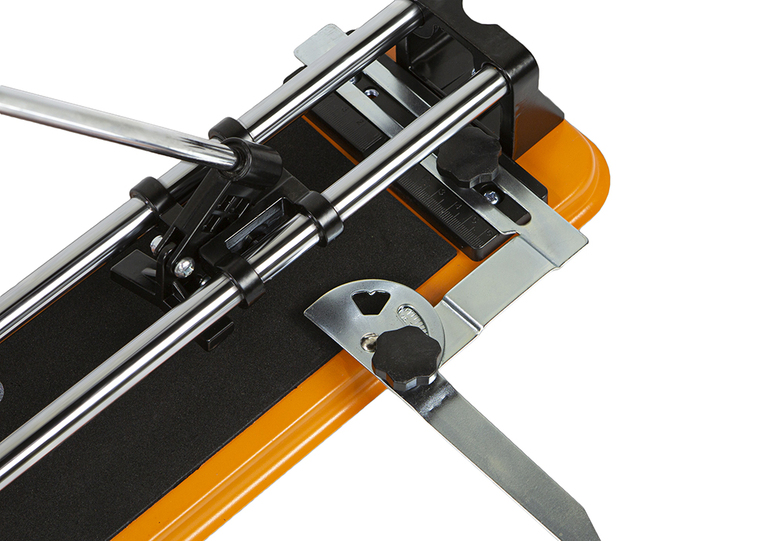 Станина имеет мягкие накладки, уменьшающие вероятность повреждения кафеля.Удобная пластиковая ручка позволяет вести рез плавно, обеспечивая высокую точность.
