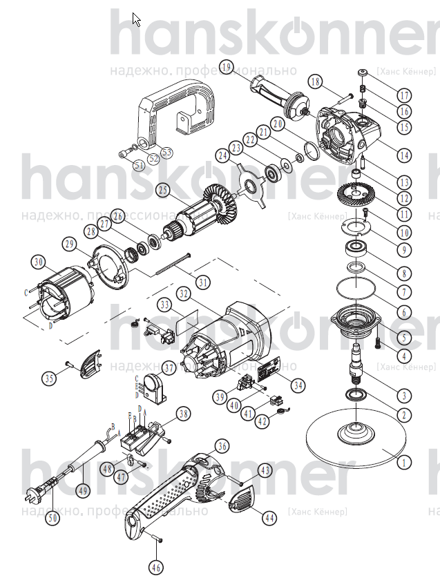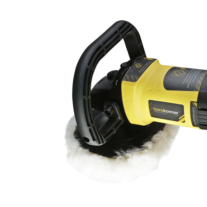 Hanskonner HAG918CP – мощная универсальная полировальная машина под рабочий диаметр диска 180 мм. Имеет компоновку с длинной рукоятью и рассчитана под двуручный хват, благодаря чему достигается наилучший контроль в процессе работы. Также, комфорту эксплуатации инструмента, способствуют его выверенные массогабаритные показатели, нейтральный центр тяжести и отличная эргономика. Модель оснащена производительным 1400 Вт электромотором, запас мощности которого позволяет эффективное использование машины не только при полировке мелких элементов, но и при обработке больших плоскостей. Важной особенностью полировальной машины Hanskonner HAG918CP является наличие электронного блока EPM (Electronic Power Manager), который позволяет поддерживать стабильную частоту вращения на валу шпинделя под нагрузкой, обеспечивает плавный пуск и возможность регулировки оборотов в широком диапазоне (500 – 3000 об/ мин) – пользователь может настроить оптимальную частоту вращения вала шпинделя в соответствии с обрабатываемым материалом и типом полировальной пасты. Для обеспечения высокой надежности инструмента особое внимание уделено наиболее нагруженным элементам конструкции: электромотор покрыт несколькими изоляционными слоями термостойкого лака, повышенной прочностью обладают шестерни редуктора, используются высококачественные фирменные подшипники NSK. Удобству обслуживания способствует функция быстрого доступа к щеткам, позволяющая производить их замену без демонтажа элементов корпуса. Сетевой кабель имеет резиновую изоляцию, что сохраняет его гибкость и эластичность в условиях низких температур, а четырехметровая длина кабеля дает возможность использовать инструмент без применения дополнительного сетевого удлинителя, обеспечивая рабочую зону площадью до 50 м2.