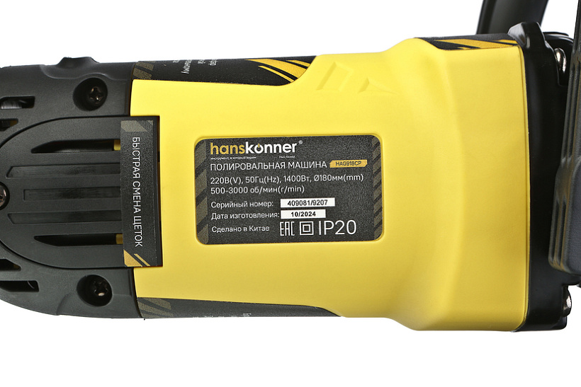 Машина полировальная HAG918CP Hanskonner,1,4кВт, 180мм, 500-3000 об/мин., пл.пуск, константная электроника
