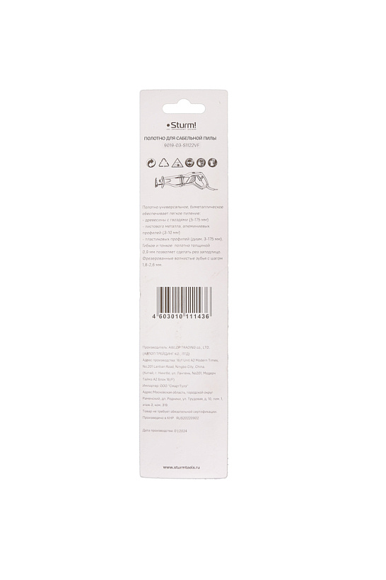 Полотно для сабельной пилы универс. 2шт 225/1,8-2,6мм (дер,мет,пласт), Sturm!