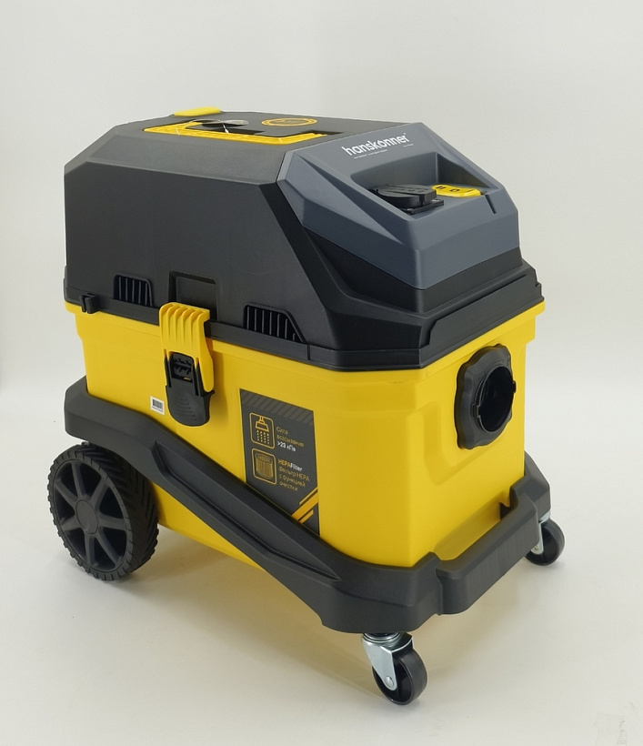 Hanskonner HVC1630 – универсальный строительный пылесос – незаменимый помощник при уборке как в мастерских, так и в бытовых помещениях, офисах, квартирах, салонах автомобилей и т д. Благодаря наличию вместительного 30 литрового бака, пылесос позволяет производить уборку на достаточно больших площадях, без необходимости его частой очистки.