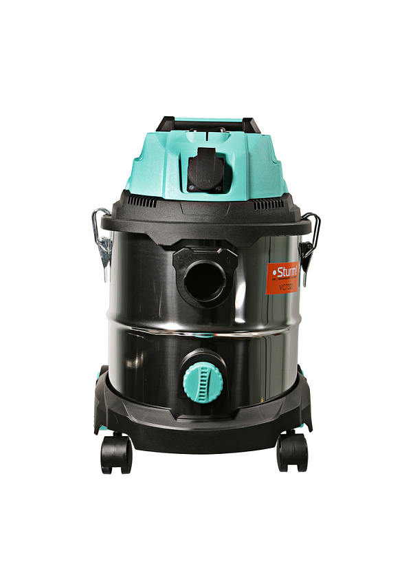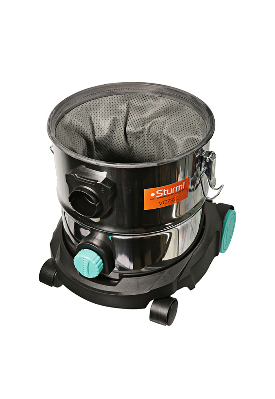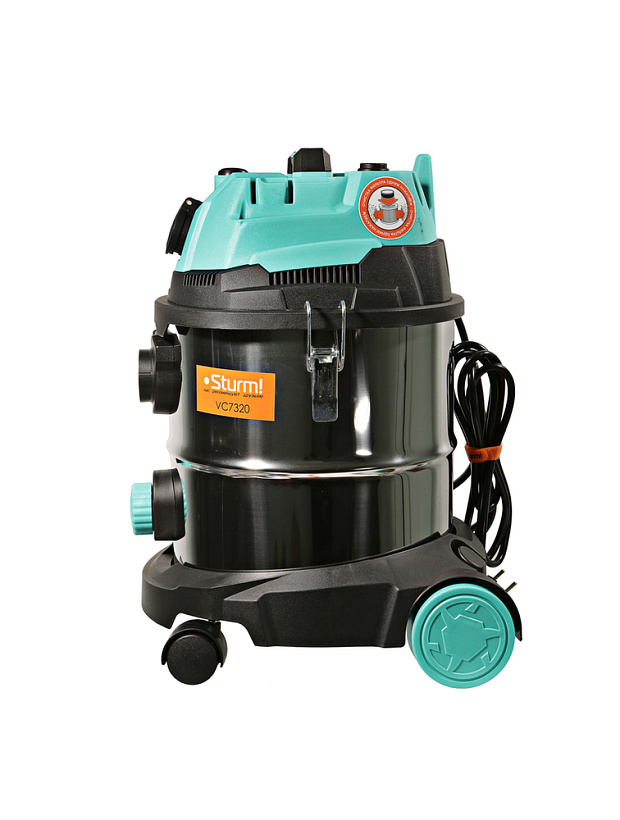 Sturm VC7320 – универсальный строительный пылесос – незаменимый помощник при уборке как в мастерских, так и в бытовых помещениях, офисах, квартирах, салонах автомобилей и т д. Благодаря наличию вместительного 20 литрового бака, пылесос позволяет производить уборку на достаточно больших площадях, без необходимости его частой очистки. Бак изготовлен из нержавеющей стали, что гарантирует стойкость к механическим повреждениям и агрессивным средам. Модель оснащена 1700 Вт электромотором, позволяющим добиться высоких показателей по скорости воздушного потока (до 40 м / с) и разрежению на входе – это способствует быстрому и эффективному удалению мусора, и пыли. Помимо традиционного режима всасывания, конструкцией предусмотрен режим выдува воздуха – он идеально подходит для экспресс-очистки рабочих столов и верстаков, а также очистки штроб и т д. Также, устройство может применяться и для сбора негорючих жидкостей. Для удаления собранной жидкости в нижней части бака предусмотрена сливная горловина. Благодаря мощной системе фильтрации, с применением высокоэффективного HEPA фильтра, предотвращается попадание пыли и абразивных частиц в двигатель. Важной особенностью Sturm VC7320 является функция дистанционной самоочистки фильтра нажатием специальной кнопки в верхней части корпуса. Наличие функции синхронного старта, позволяет использовать пылесос, как единую систему с любым другим инструментом мощностью от 110 до 2000 Вт – при ее активации, запуск пылесоса производится автоматически сразу после запуска основного инструмента, что положительно влияет на удобство работы и позволяет сконцентрировать внимание преимущественно на рабочем процессе, а не вспомогательных операциях. Модель комплектуется металлической телескопической трубкой со ступенчатой регулировкой длины, трехметровым высокопрочным гофрированным шлангом, набором насадок, набором фильтров, мешками пылесборниками, а также универсальным адаптером. Удобству перемещения пылесоса с места на место способствует платформа на 4-х независимых колесах.
