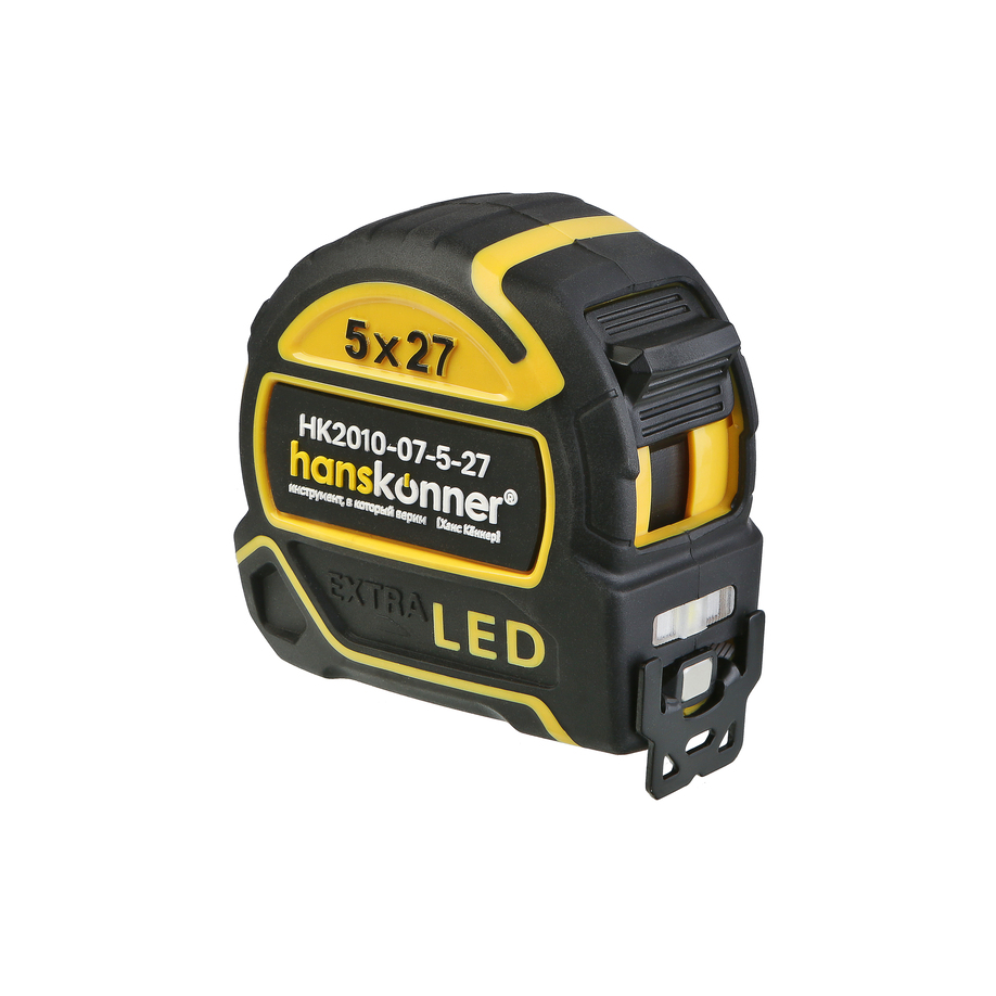Рулетка 5x27мм, автостоп, двухстор., нейлон, супермощный магнит, Hanskonner