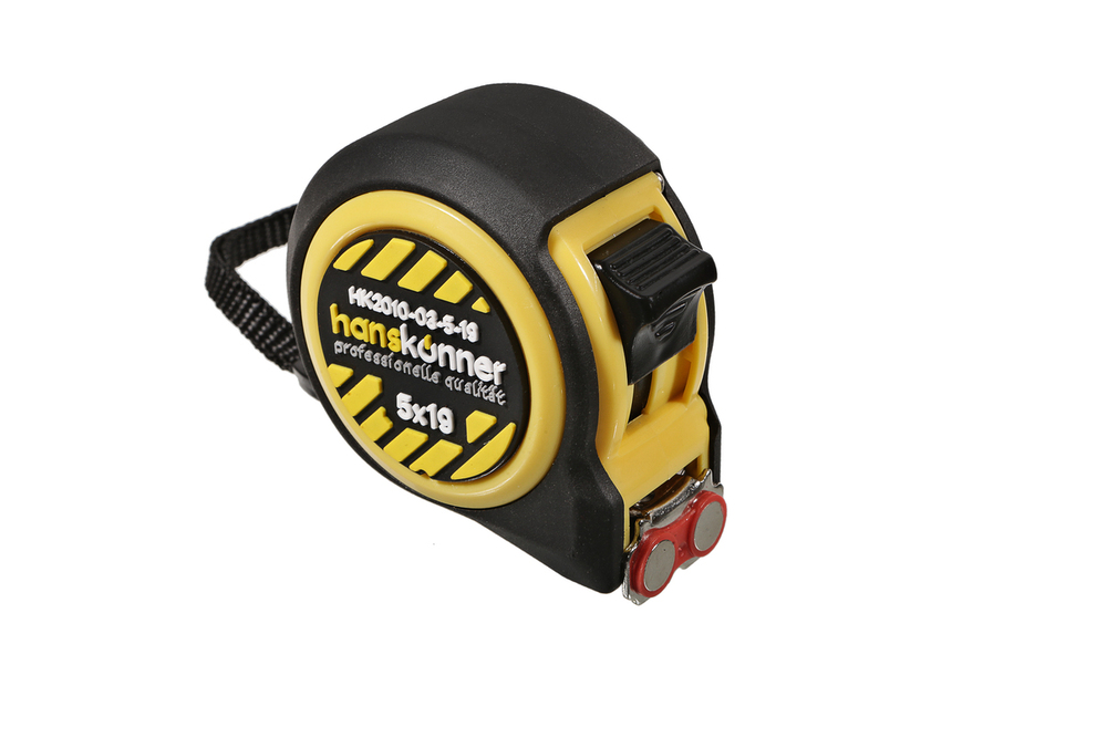 Рулетка 5x19мм, 2 стопа, компактн. корпус, 2 стопа,мощный магнит, Hanskonner