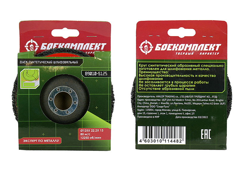 Диск синтетич. Шлифовальный Эксперт по металлу 125 мм, БОЕКОМПЛЕКТ