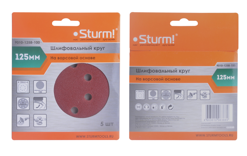 Круг шлифовальный Sturm! "под липучку", d125мм, зерн. 120, 8 отв., 5 штук.