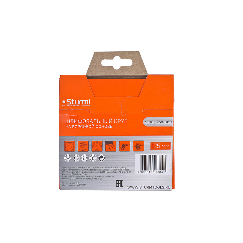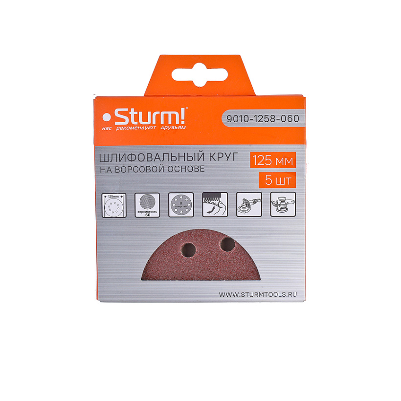 Круг шлифовальный Sturm! "под липучку", d125мм, зерн. 60, 8 отв., 5 штук.