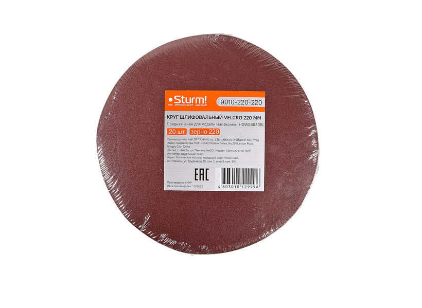Круг шлифовальный абразивный, d=220мм, зерно 220, 20шт, для HDWS6080BL, Sturm!