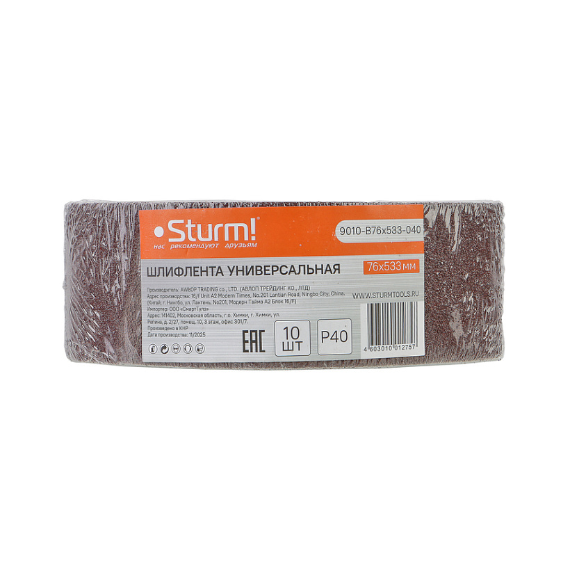 Шлифлента, 76x533мм, Р40, 10 шт, Sturm!