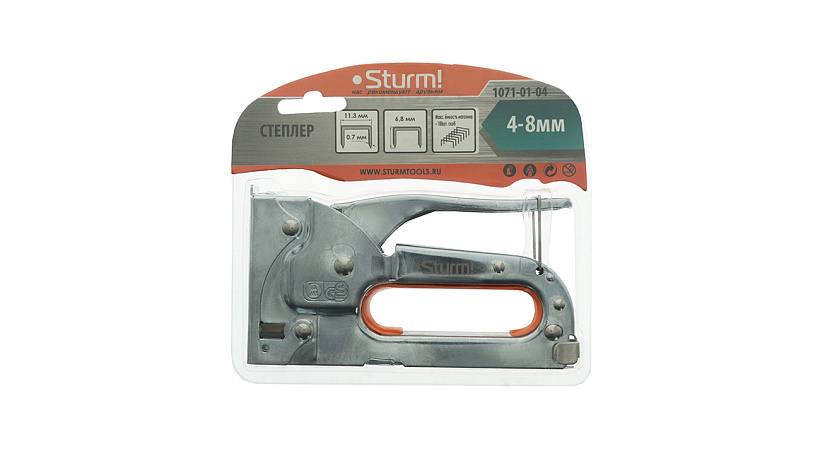 Мебельный степлер «Sturm!» предназначен для пришивания обивки различного вида к деревянным основаниям и рекомендуются для широкого применения при производстве мебели и различных задач в быту.